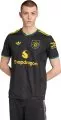 Design și Stil: Cu o culoare neagră izbitoare, accentuată de accente galbene îndrăznețe, tricoul afișează emblema iconică a Manchester United și logo-ul sponsorului. Designul ajustat asigură un aspect modern și elegant.